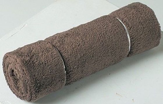 (2)バスタオルの両端を内側に折って雑誌を包み、雑誌ごとクルクル巻いていく。最初のひと巻きは芯になるので、できるだけ小さく巻く。