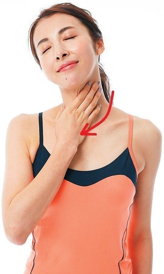 (2)耳下から胸につながる首筋のラインを押し伸ばす