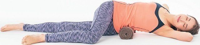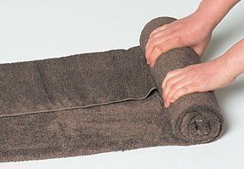 1と2のポーズで心地よい刺激を感じない場合は、タオルポールの下にたたんだタオルを置き、高さをつけて調節してみて。