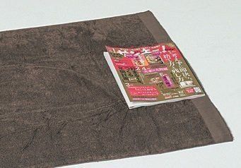 (1)広げたバスタオルの上に雑誌を置く。タオルポールが好みの硬さになるよう、雑誌の厚さをいくつか試してみると◎。