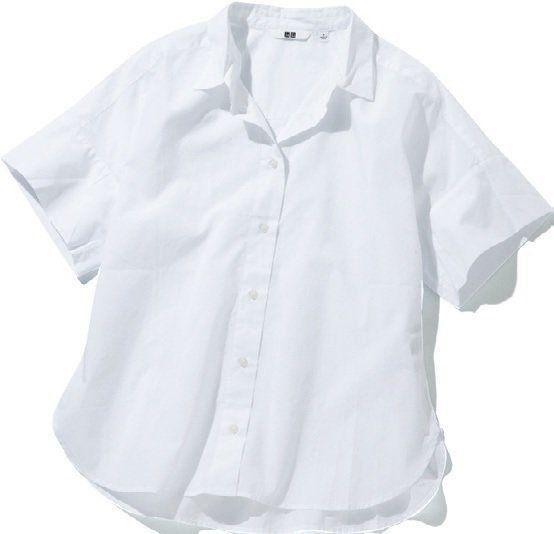 張りのあるコットン素材のシャツは大得意!上部のボタンをはずして首もとを見せ、パリッとアイロンをかけるとあか抜けます/ソフトコットンシャツ ホワイト¥1,990