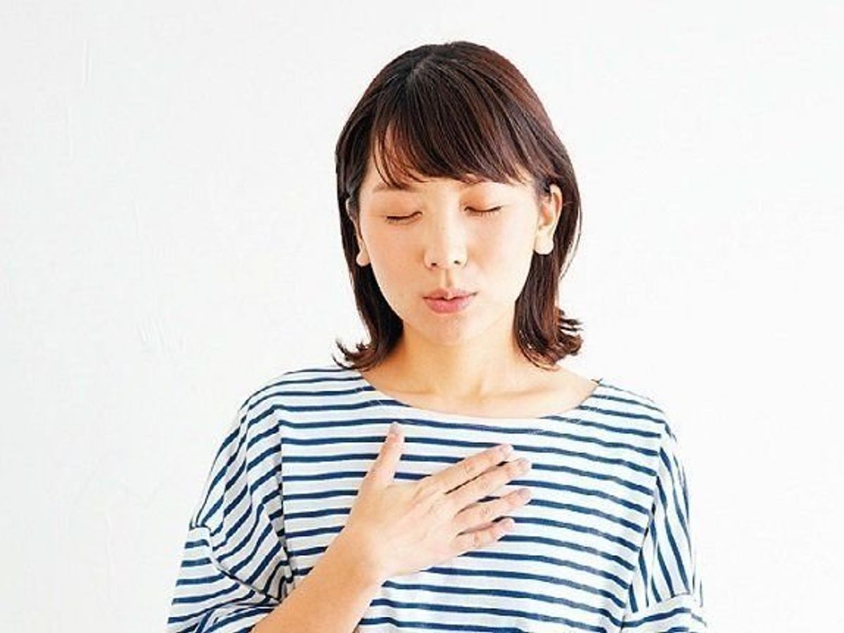 空腹のときは、交感神経が優位になっている状態。そこで、深くゆっくり呼吸をすると副交感神経が優位になり、心が落ち着いてリラックスします。「いただきます」を言う前に深呼吸を3回するだけで、おなかが満たされたような感覚に。食べすぎの防止に効果絶大!