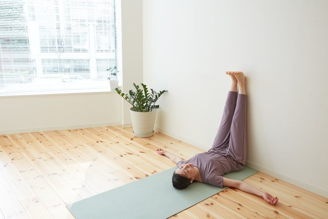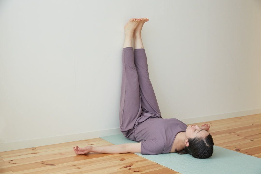 一日の最後に、両脚を上げることで全身の巡りを整え、リラックスをしましょう。一連のヨガの締めにもぴったりなポーズです。