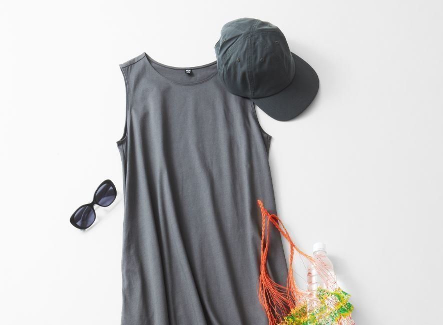 ノースリーブロングワンピース¥1,990(ユニクロ)、キャップ¥1,990(ユニクロ ユー)/ユニクロ ほかスタイリスト私物