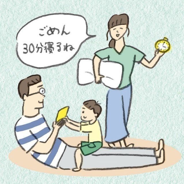 日々忙しくしていると、週末にドカッと疲れが出がち。どうしてもしんどいときは、「30分だけ寝るね」と宣言し、夫に子どもたちの面倒をお任せ。夫婦交代でお昼寝することも(ふわふわパンさん/香川県36歳)