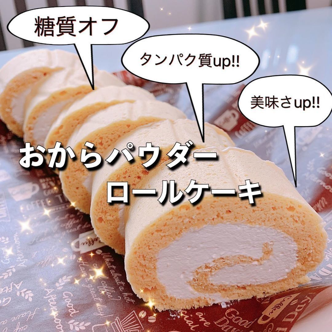 ある日のおやつは、手づくりロールケーキ。おからパウダーと豆乳、糖質ゼロ甘味料のラカントを使用しているので、低糖質かつタンパク質もとれるうれしい一品です。このほかにも、ケーキやアイス、クッキー、プリンなど、たくさんの低糖質スイーツレシピを公開していますよ。