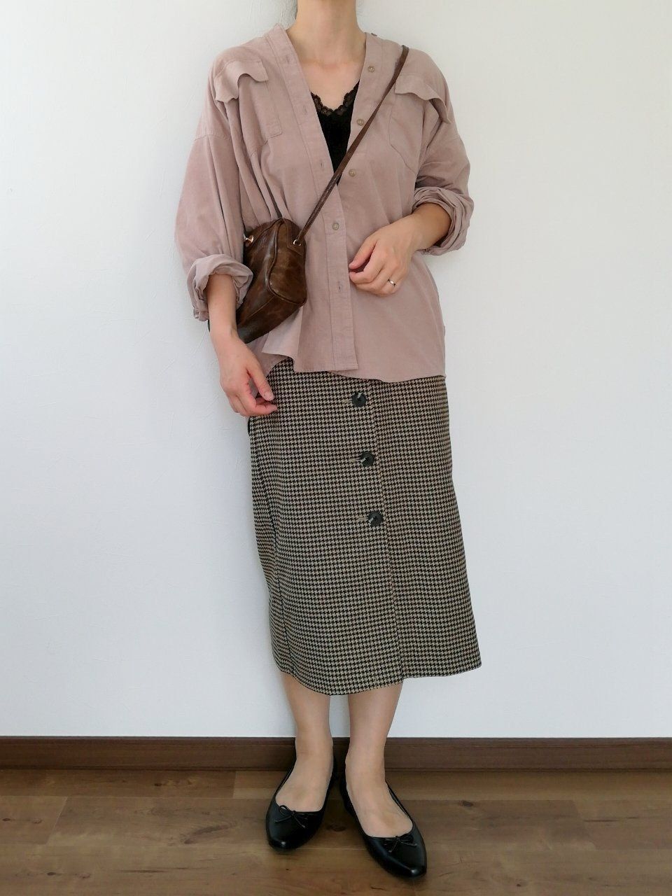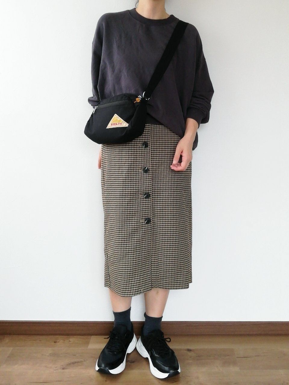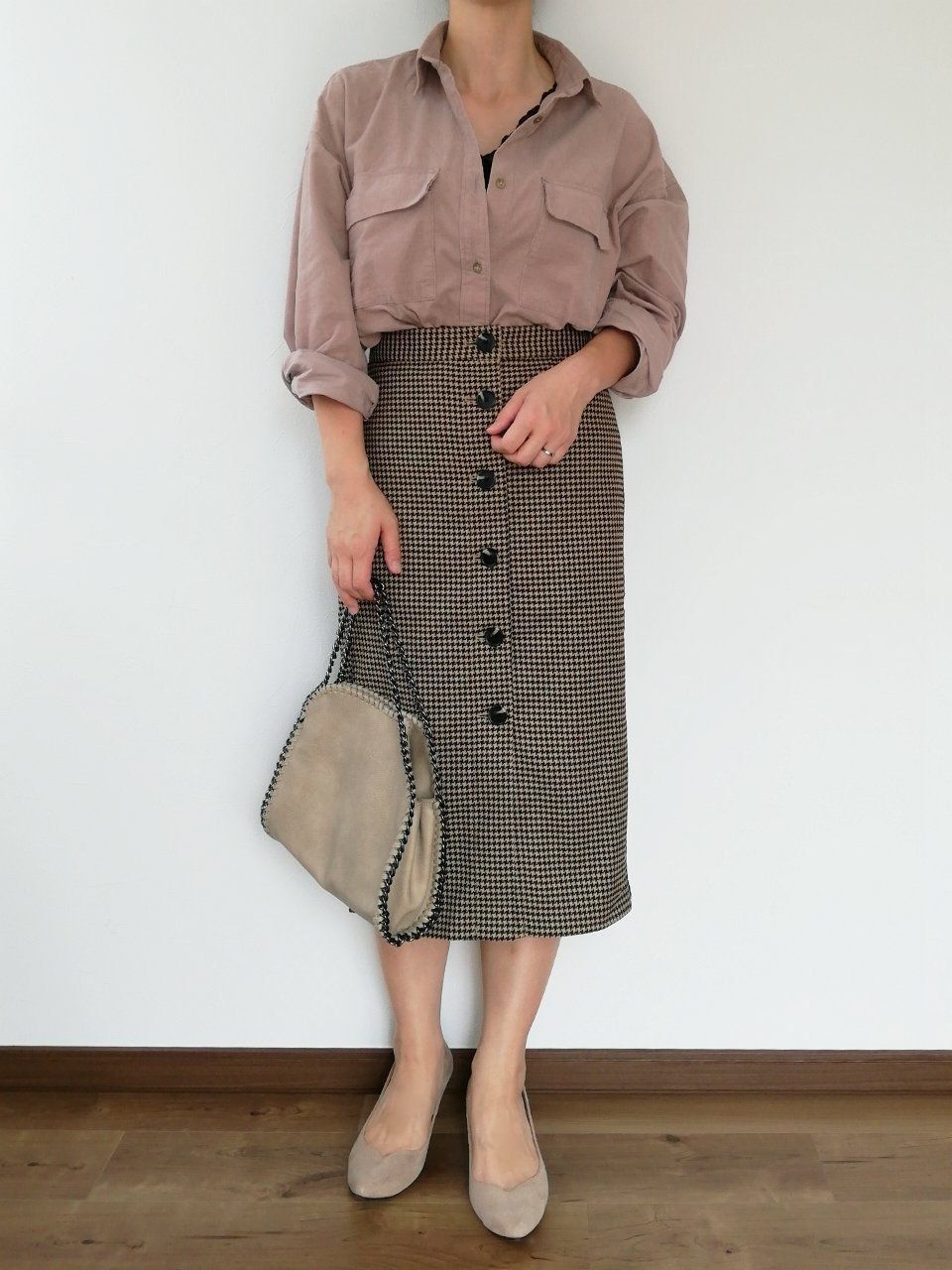 クラシカルなチドリ柄が秋コーデにぴったりなスカート、GUで見つけました!トップスや小物で印象がガラリと変わるので、オンオフ活躍する優秀アイテムなんです。