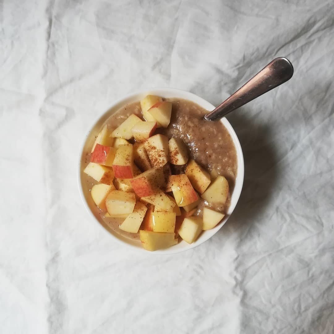 朝ごはんのオートミール粥にりんごを組み合わせたところ、お通じの調子がよくなりました。オートミールは、無脂肪乳や豆乳を使わずに水だけで煮ていますが、りんごとシナモンの風味をプラスすることでおいしく食べられるのだとか。りんごに含まれるペクチンは加熱によって増加するので、焼きりんごなどさまざまなことに挑戦しようと考えています。