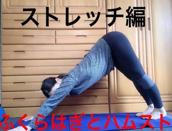 下半身痩せのためのストレッチとして、お尻を高く上げてふくらはぎからもも裏を伸ばす、ヨガのダウンドッグのポーズを実践しています。足は内股気味にしてふくらはぎを伸ばし、肩の力を抜きながら心地よい感覚を味わうのがポイント。手の位置によって伸びる位置も変わるので、自分が伸ばしたい部位を意識しながら調整すると◎。