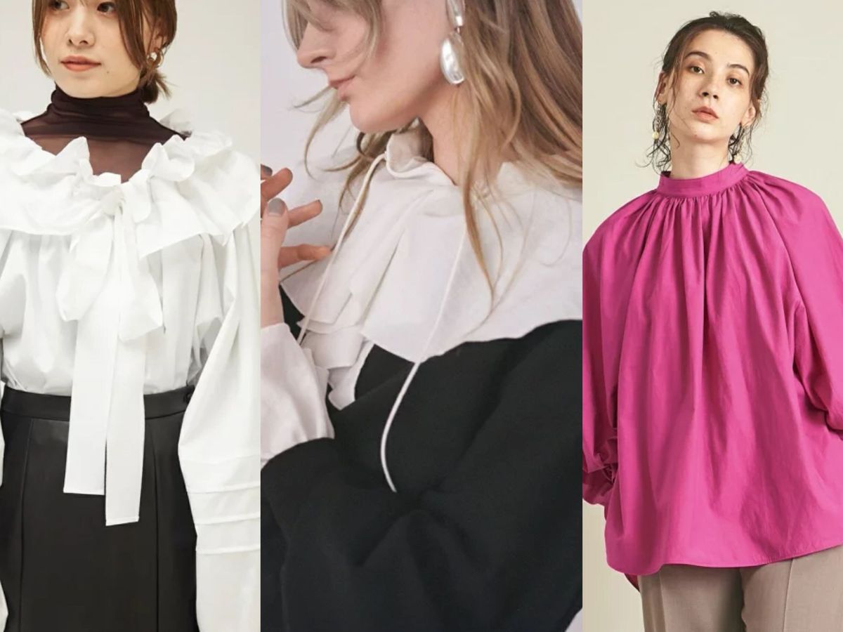 首元を大胆にみせた襟元が特徴のボリュームブラウス。オフショルのようにインナーにアイテムを重ねるのもおしゃれですね。袖にゆとりがあり、裾をインするとアクセントのあるコーデに仕上がります。