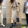 どのカラーのアイテムと合わせても大人っぽくキマるベージュカラー。ロング丈のスカートやコートなどを重ね着して、足元をスッキリみせると引き締まってみえますよ。