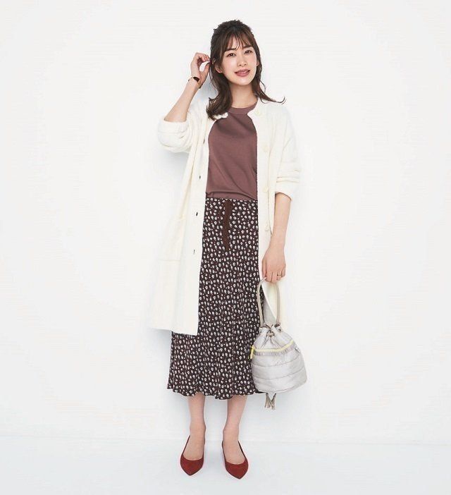 ロングカーデで柔らかい雰囲気に。