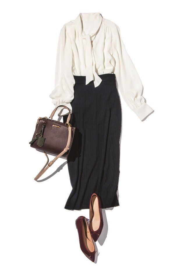 ブラウス/着回し ニットスカート¥2,990/UNIQLO バッグ¥10,000/Jewelna Rose 東急プラザ表参道原宿店 バレエシューズ¥1,490/GU
