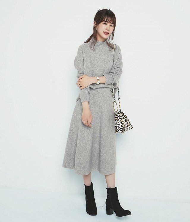 ニット、スカート/着回し イヤリング¥15,000/Jouete 時計¥22,000/モックバーグ(エイチエムエスウォッチストア 表参道) バッグ¥5,500/Jewelna Rose 東急プラザ表参道原宿店 ブーツ¥16,900/A de Vivre