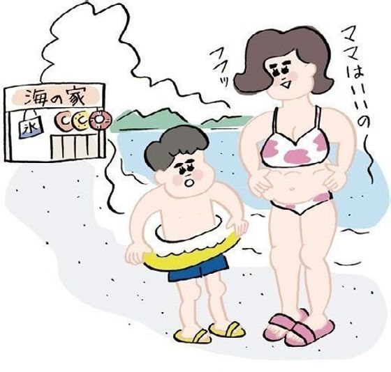出産してからおなかに肉輪がつき、年々巨大化。プールでは「ママは肉輪があるから浮くんだよ~」と笑いながらも、切なくなってうっすら涙目……(福島県 プールで食べる焼きそば、大好きママ)