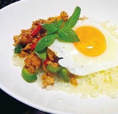 ▲ガパオの白米をカリフラワーライスに。スパイスの効果でカリフラワー感がなく、おいしくて大満足
