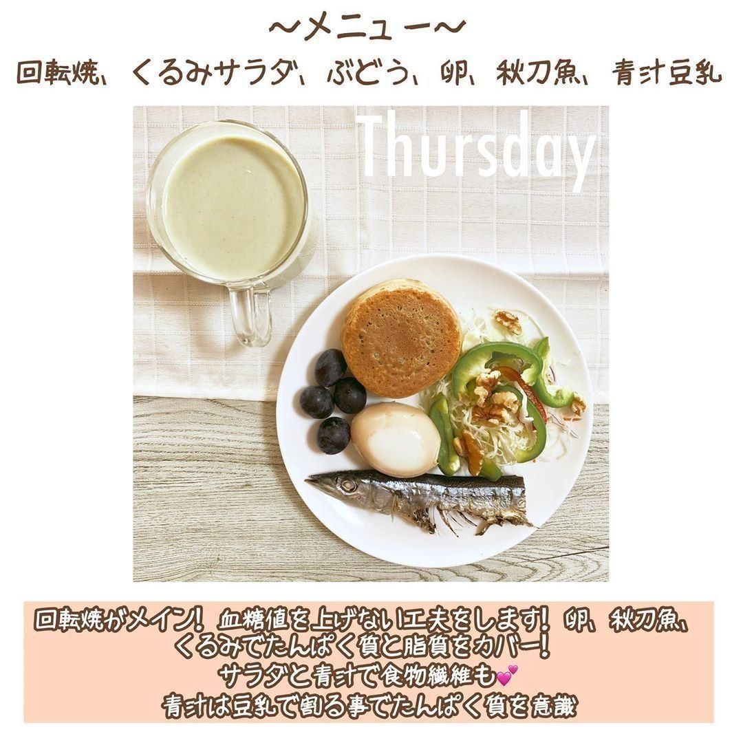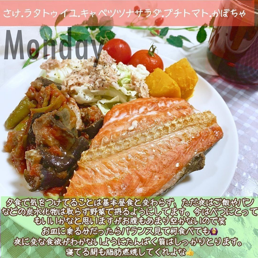 58kgあった体重から、-18kgのダイエットに成功したnashi.stagramさん。朝食は必ずとるように心がけています。朝食を食べることで基礎代謝が上がり、昼のどか食いも防げるのだとか。メニューは、絶対に食べたいものをベースに、栄養バランスが整えられ血糖値が上がりにくい組み合わせを意識して決めているようです。