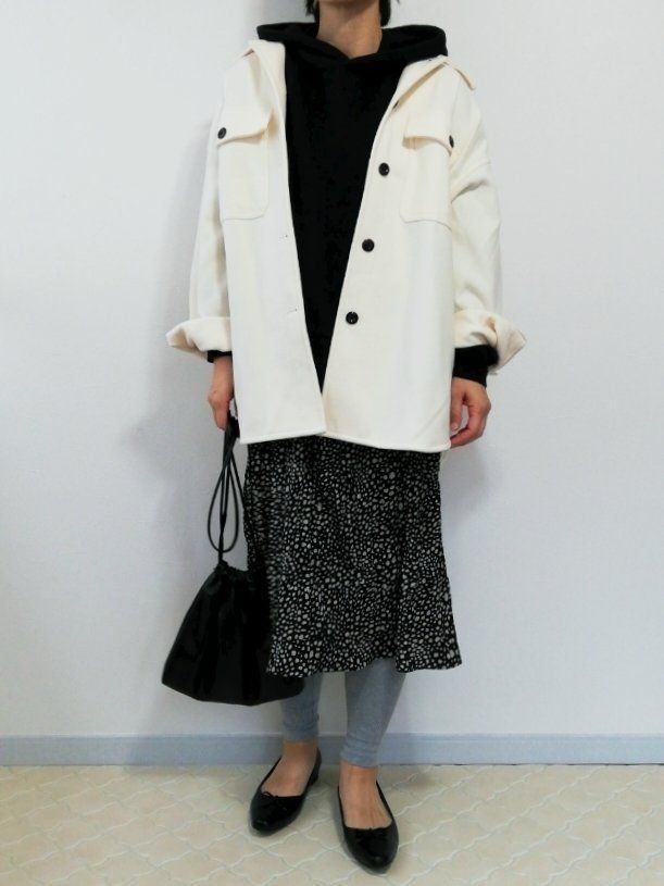 ボトムスを変えることで、旬なシルエットにチェンジできます!