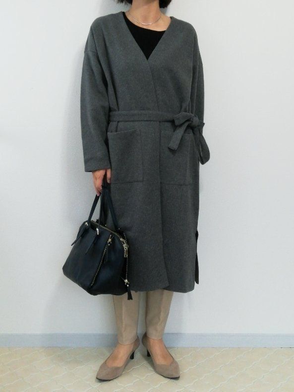 付属のベルトでウエストマークすると、トレンド感もありながらきちんとした雰囲気を演出できます。