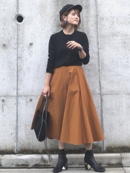 パンツよりも、女性らしいやわらかさを演出してくれる、スカートコーデ。丈感やシルエットによって、ぐっと印象がかわりますよ。