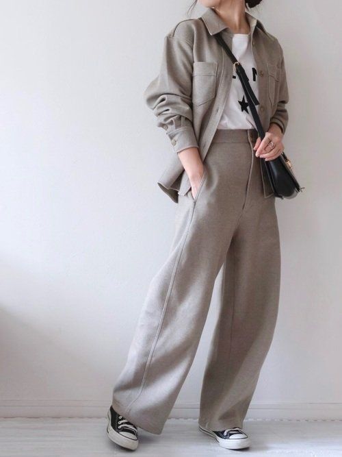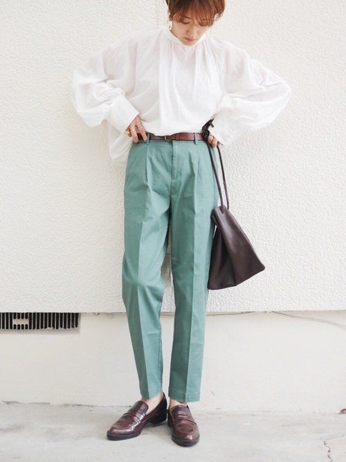 移動時間が長いときには、楽ちんなパンツコーデがおすすめ。ラフになりがちなので、小物やトップスでバランスをとるといいですよ。