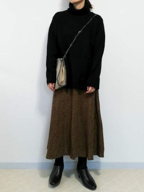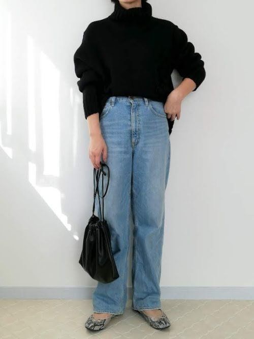 黒タートルニット×デニムは、大人女子の定番コーデと言っても過言ではありません!大人っぽさとカジュアルさが両立した、シンプルながらも「間違いない」着こなしです。