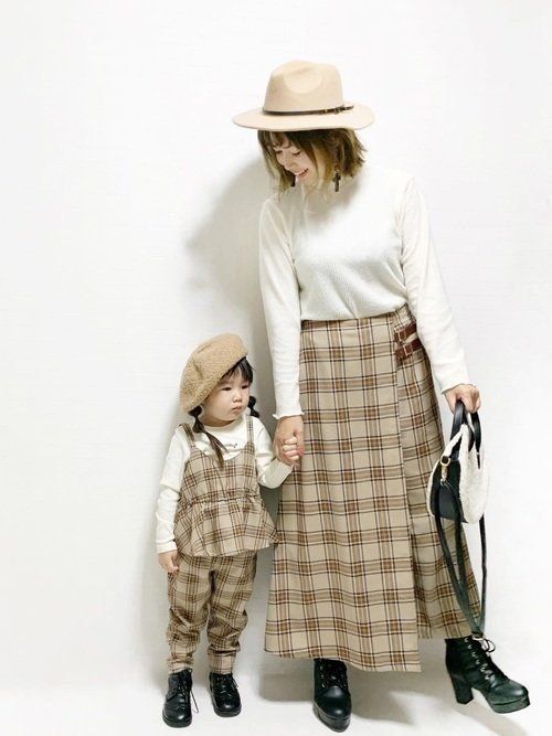 無地のトップスに柄のボトムを合わせるとコーデが華やかになります。落ち着いた色味やトラッドなチェック柄ロングスカートなら、40代でも合わせやすいですよ。