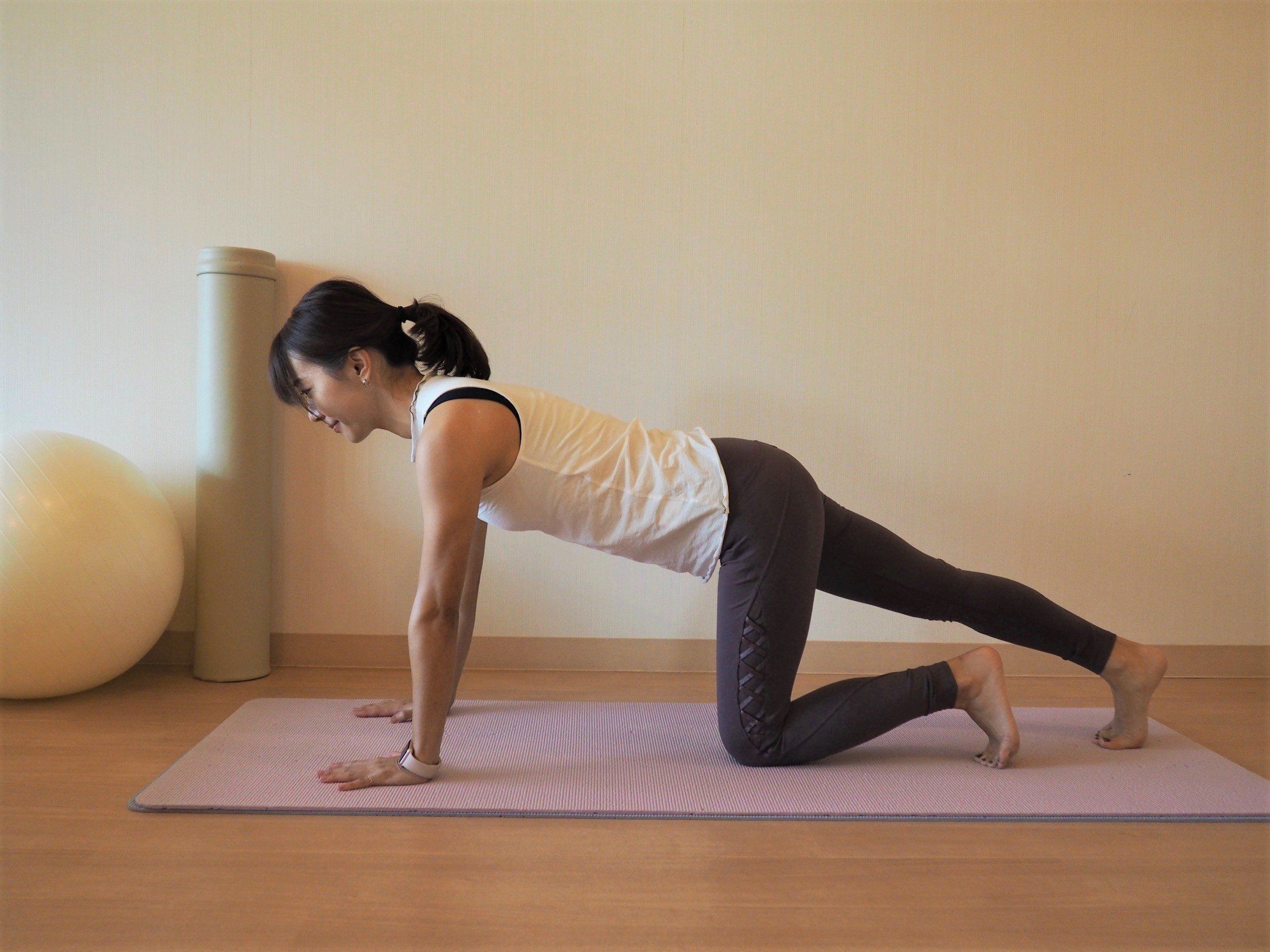 ※ 手は肩幅、足は腰幅に開き、肩の下に手首、股関節の下にひざをつく