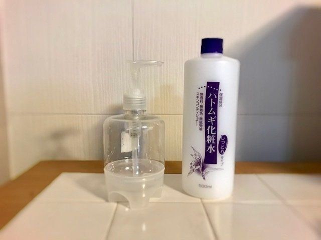 写真のハトムギ化粧水(販売元:アエナ)はセール価格329円(税込)で購入しました。