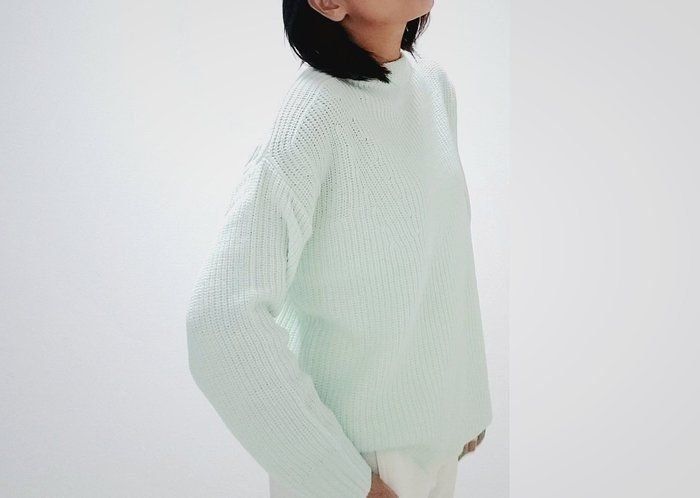 今回着まわすのは「アゼボトルネックセーター」で、カラーはミントグリーンな色合いの「50 LIGHT GREEN」をチョイスしました。価格は790円(2020年1月30日時点)。