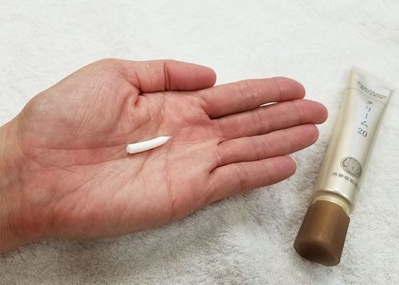 ぜいたくな美容成分をふんだんに詰め込み、肌の奥(※5)に届けることに特化したという「クリーム20」。「とにかくテクスチャーが最高ですね! こっくりとしているので、チューブから出した瞬間はかたいのかな?と思ったけど、その分濃密な感じがして、目のまわりの小じわにまでちゃんとしみ込んでいく感じがあります。クリームなのにベタつかず、かと言って薄い感じでもなく、使っていて気持ちいいんです!」と、榊さん。早くも新しくなった「クリーム20」のとりこに…!?