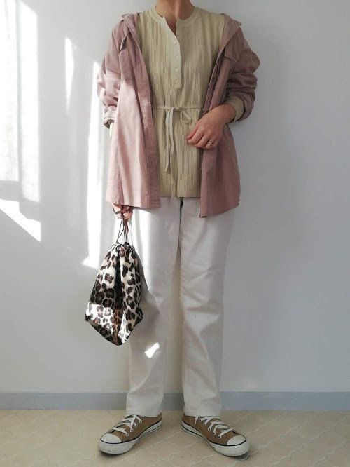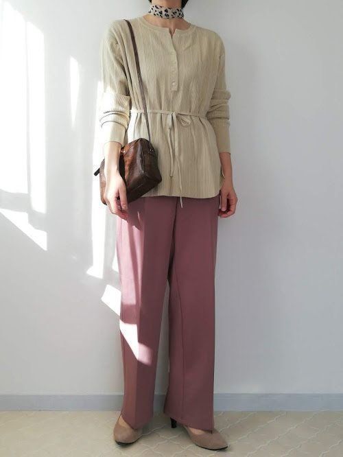 ピスタチオ×くすみピンクの、最旬トレンドカラーを合わせた春コーデ。