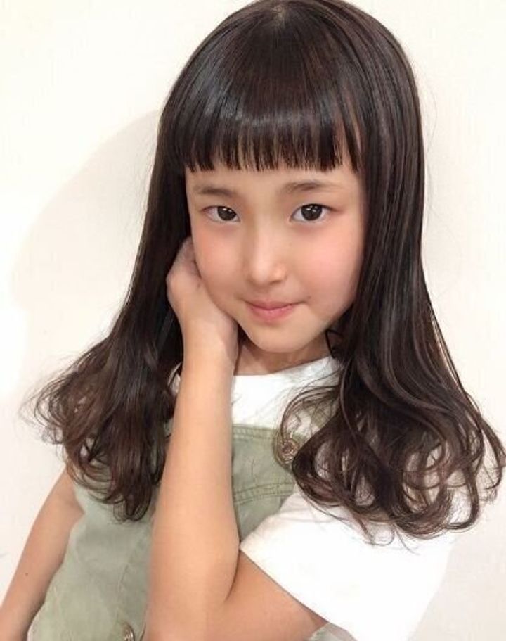 ツヤツヤのストレートヘアを存分に活かしたロングヘア。いろんなアレンジもできるロングヘアは、おしゃれな小学生女子たちに大人気です。大人びたロングヘアに、オン眉の前髪がとってもキュートですね。