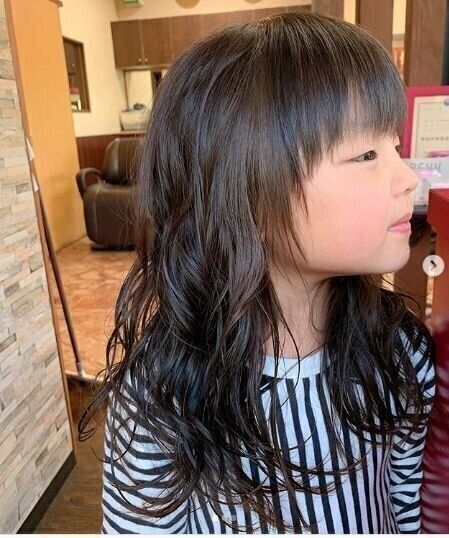 ウェーブ感のあるロングヘアをかわいく見せるなら、シースルーな前髪をつくるのがおすすめ!前髪から見せる眉毛が小学生らしいあどけなさを演出し、今風な雰囲気を出すことができるので、とってもおしゃれなヘアスタイルが楽しめます。