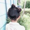 ふたつにまとめたお団子ヘアは小学生らしい元気いっぱいな印象に。おくれ毛を巻いたり、大きめのヘアピンをプラスすればおしゃれ感もよりアップします。