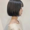 おでこがしっかり見えるように、前髪をギリギリまで短くしたボブです。なだらかな前下がりラインにカットされており、少し段差を入れて丸みのあるシルエットにしています!前髪が浮きやすい場合は、押さえながらドライヤーを当てて乾かしましょう。