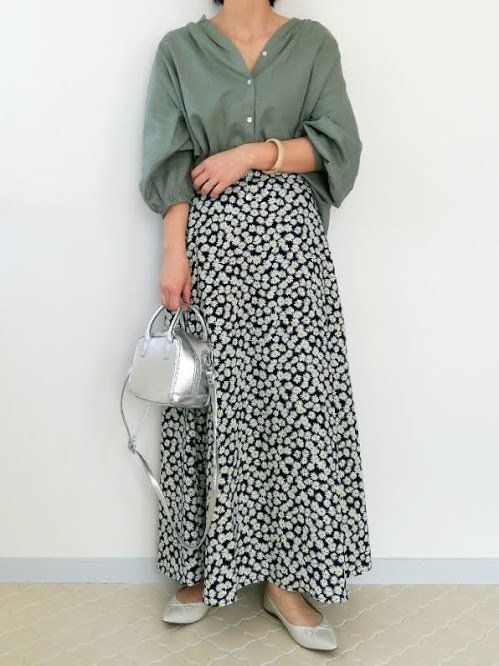 花柄ロングスカートで大人かわいい春コーデ。