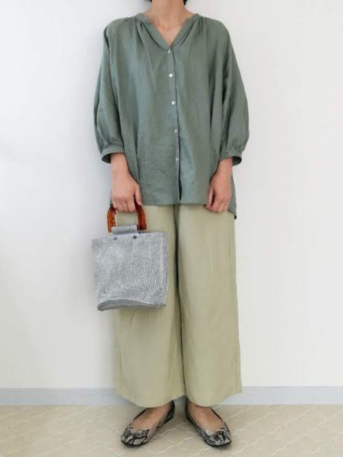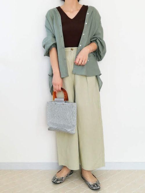 肌になじむグリーンで、春夏らしい旬なコーデに仕上げてくれます。