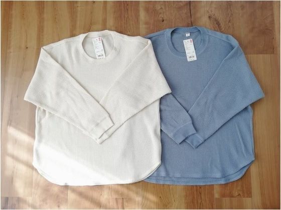 ユニクロではもはや定番人気のワッフルT。今期の「ワッフルオーバーサイズクルーネックT(長袖)」は、1,500円(2020年4月12日現在)。丸みのある、今っぽいシルエットがかわいいと評判!