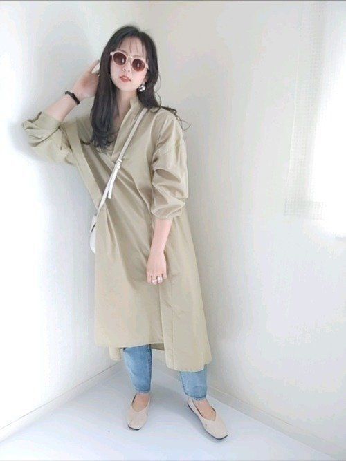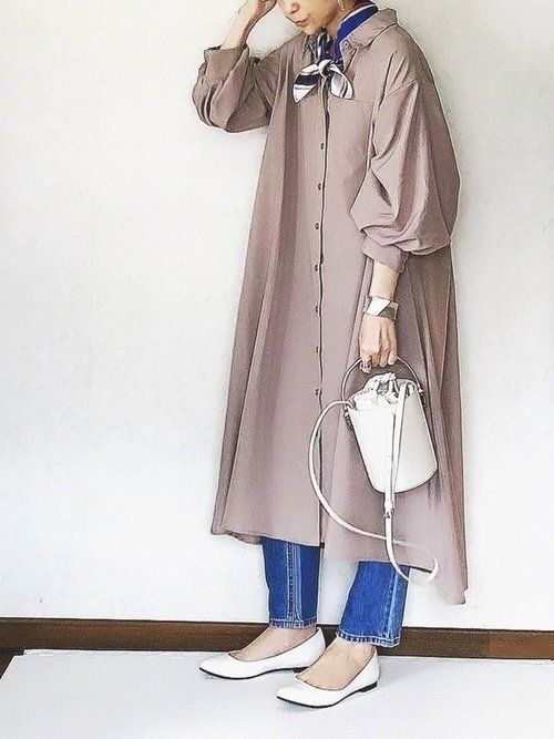 ロング丈の多いシャツワンピは、羽織るだけで簡単にIラインを強調できるので、スタイルアップ効果が期待できます。