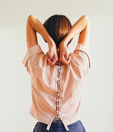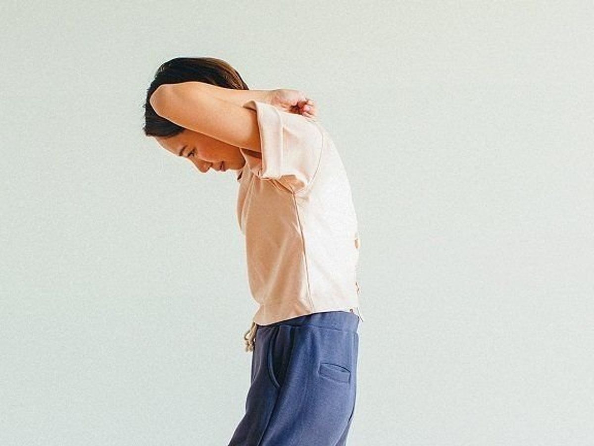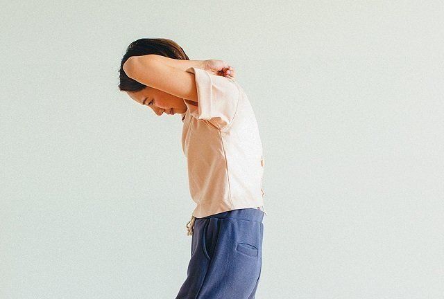 ・右手を握りこぶしにして首の後ろのつけ根につける