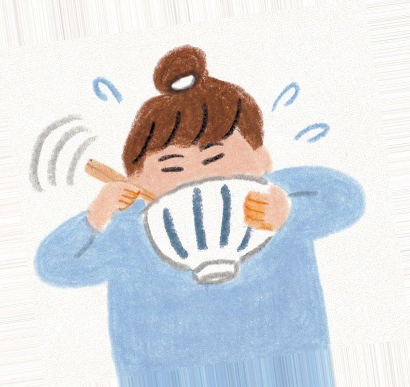 大食い競争でもないのに気づけばかっ込みめし。箸と茶碗はごちそうさままで離さない!