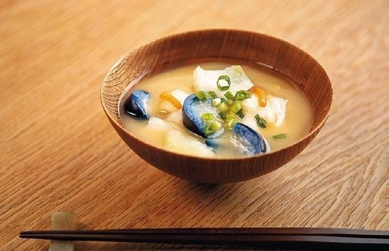 発酵食品のみそ汁に、同じく発酵食品である漬けものをプラス。漬けものは塩分が多いので、みその量を控えめにして。