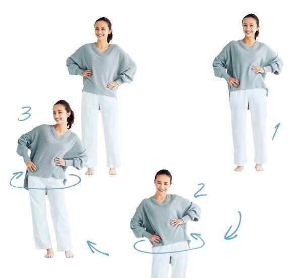 便秘がちな人は、忙しい朝でもすぐできる、こんな運動を取り入れて。「体をねじったり回したりする動きによって腸が効果的に刺激され、詰まっていた便がスルッと出やすくなります」(小林さん)。