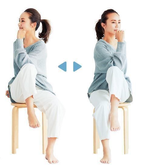 座ったまま、わき腹をねじって刺激を