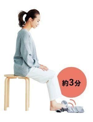 「長時間、靴をはいていると足指の血流が滞り、冷えの原因に」。足指でタオルを引き寄せる動作で、足の指や甲、すねを動かせば、血液やリンパが効率よく流れます。