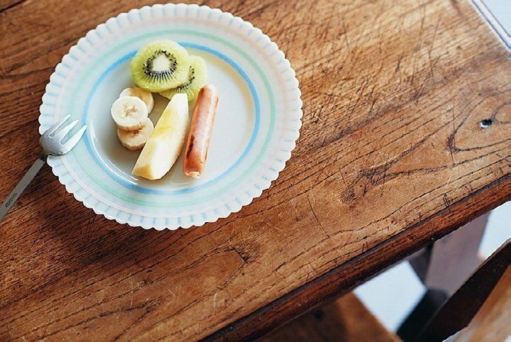 空腹時にいきなりパンやご飯などの糖質をとると、血糖値が急上昇し、脂肪をため込む原因に。朝食を2回に分けるのもよい手です。朝最初に果物を口にすると、酵素がとれて、代謝アップやスムーズな排泄にも効果的です。