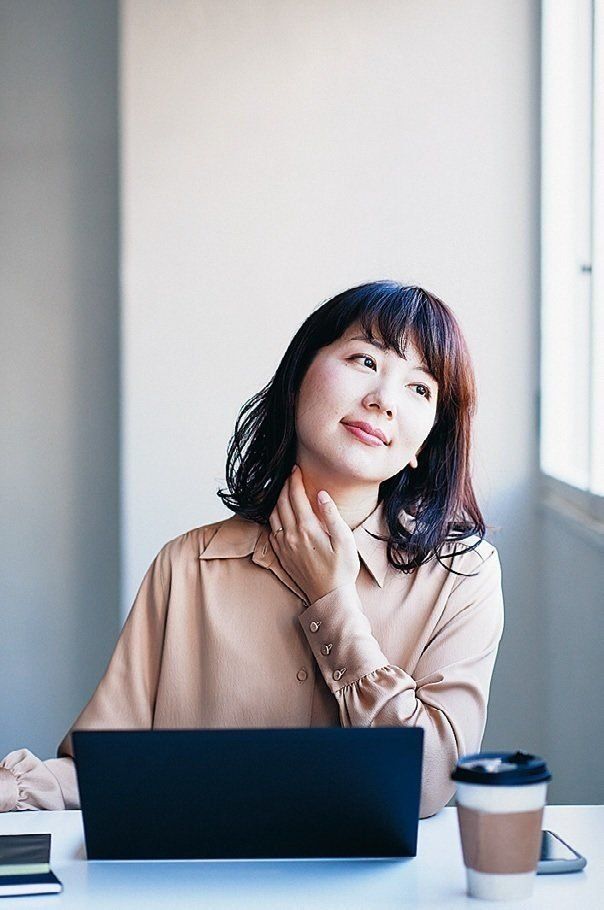 「パソコン作業が多いので、時々首筋を指圧。さらに上→右→左→右前→左前に倒すようにしています」。さらに、1時間に1回はトイレに行くように心がけ、座りっ放しを防止。