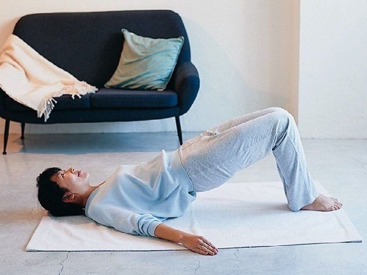 入浴前に、骨盤を締めるストレッチやスクワットを。「『毎日やらなきゃ!』と、プレッシャーをかけるとストレスに。〝自分を大事にする時間〞だと思って、ゆる~く続けています」。