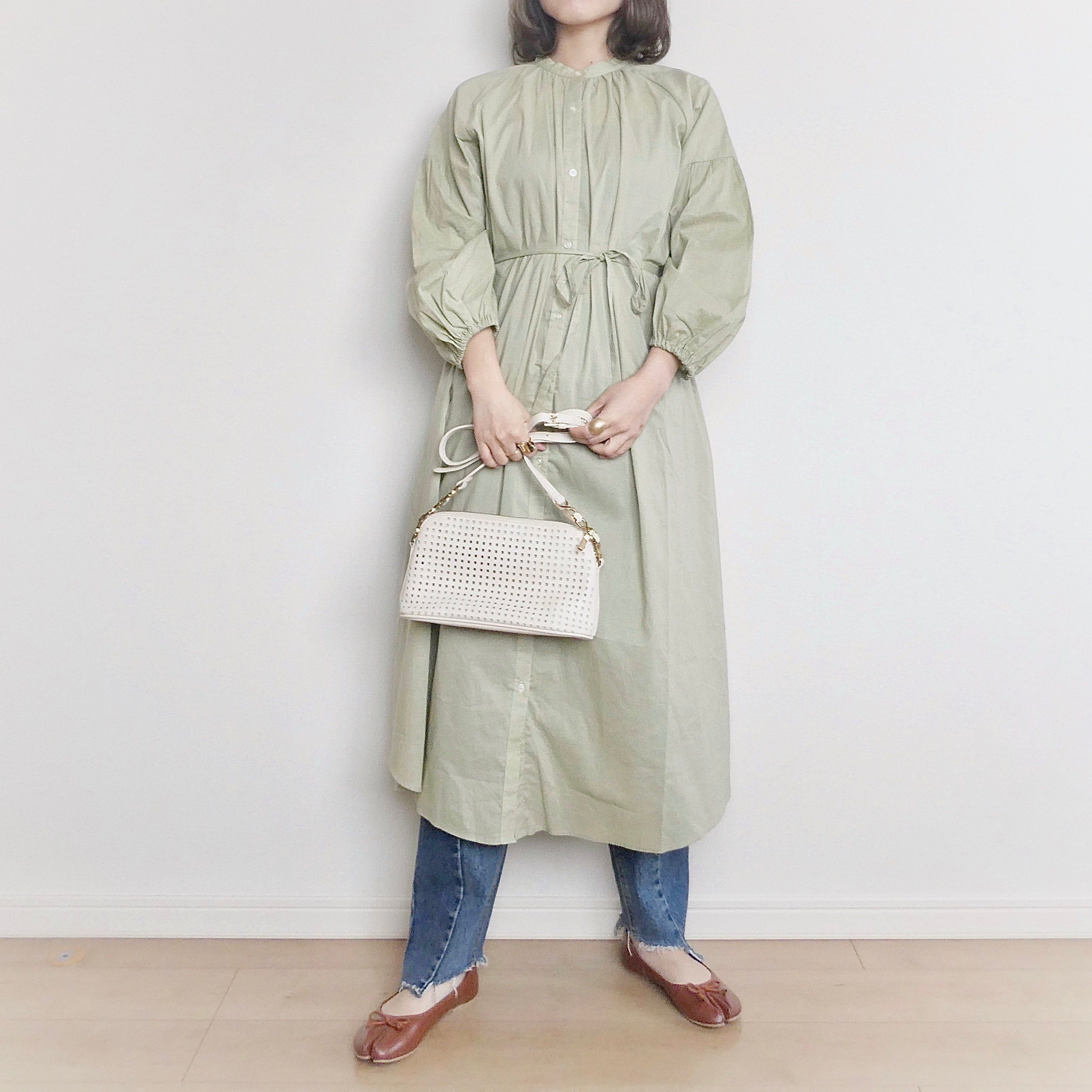 同じコーデでもウエストリボンを外してAラインのシルエットで着ると